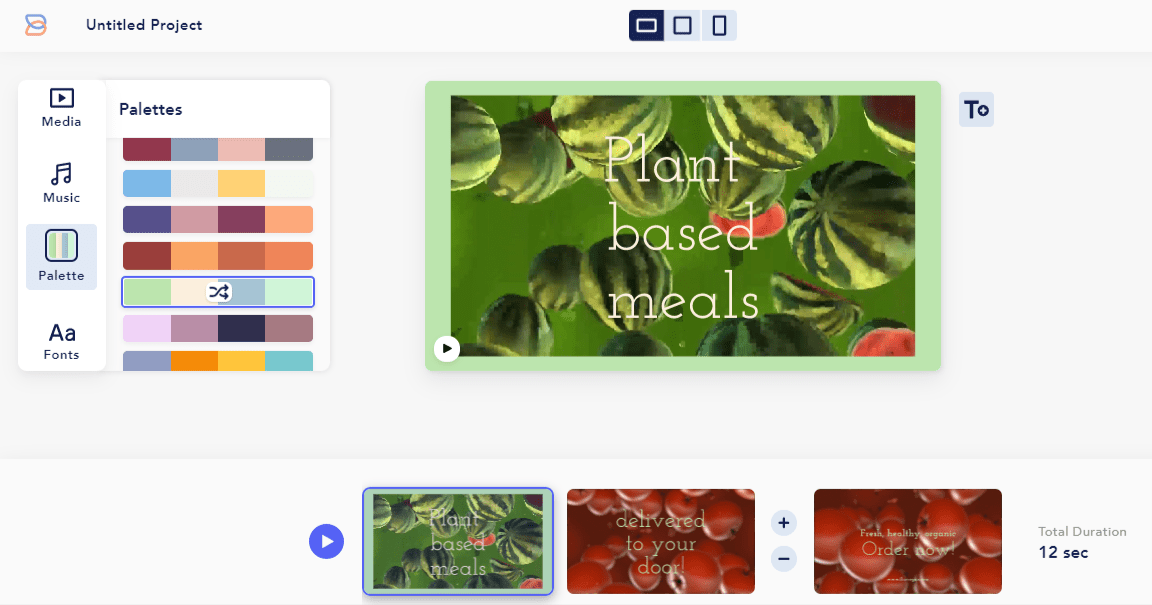 You can add texts, colors, background, images, audio clips, or your uploaded media and apply filters and speed up your videos. This allows you to have a stunning, professional-looking marketing video ready to publish in minutes.