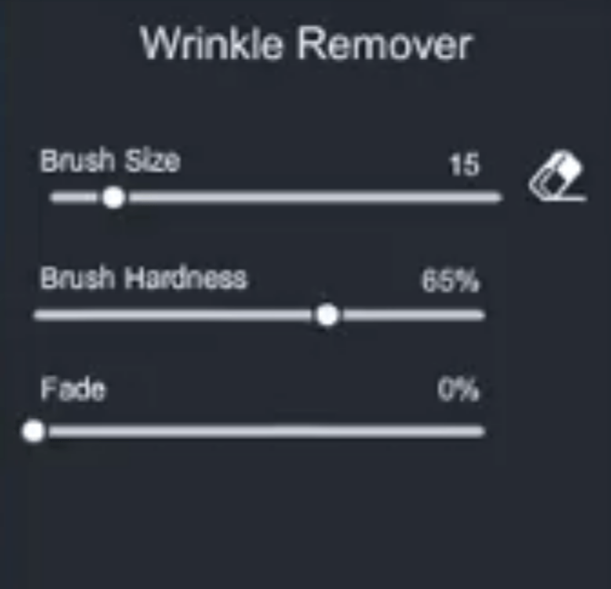 Step 2: Select the Wrinkle Removal Tool from the ‘Touch Up’ category and adjust brush size and strength