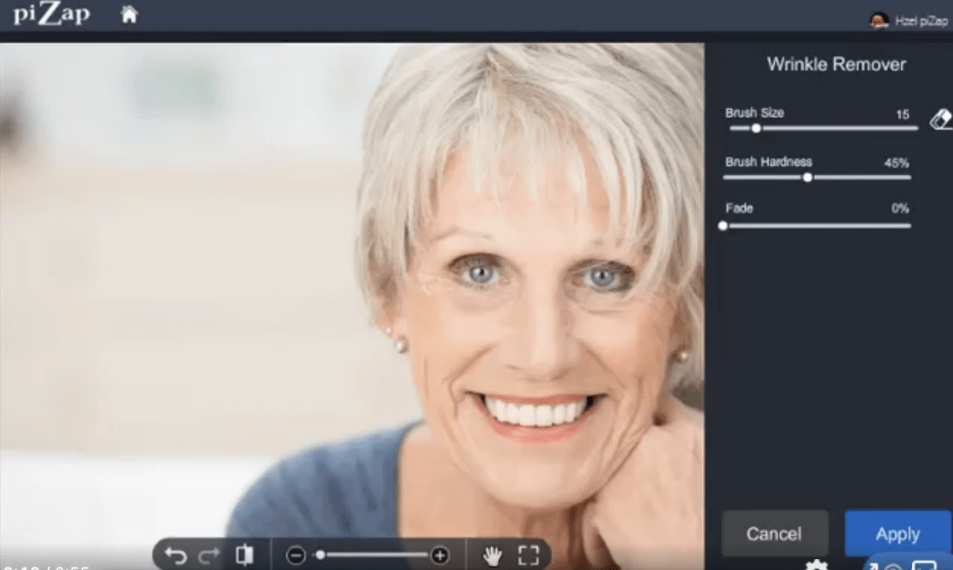 Step 4: Zoom into your pictures using the plus sign if you feel the need to remove lighter and smaller wrinkles.