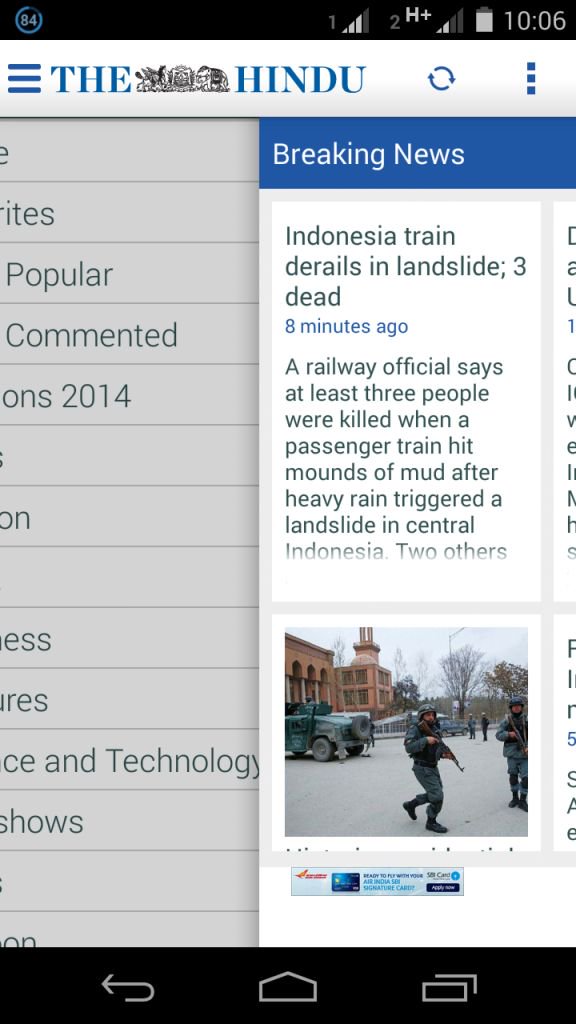 This is the official application of popular Indian newspaper, The Hindu, which is published by Kasturi & Sons. This App has an extremely simple UI but speed is unbeatable even if you are using a slow 2G internet connection. Rather than home screen, which shows top news from different sections, you can slide from the left side and dig into your favourite news topics.