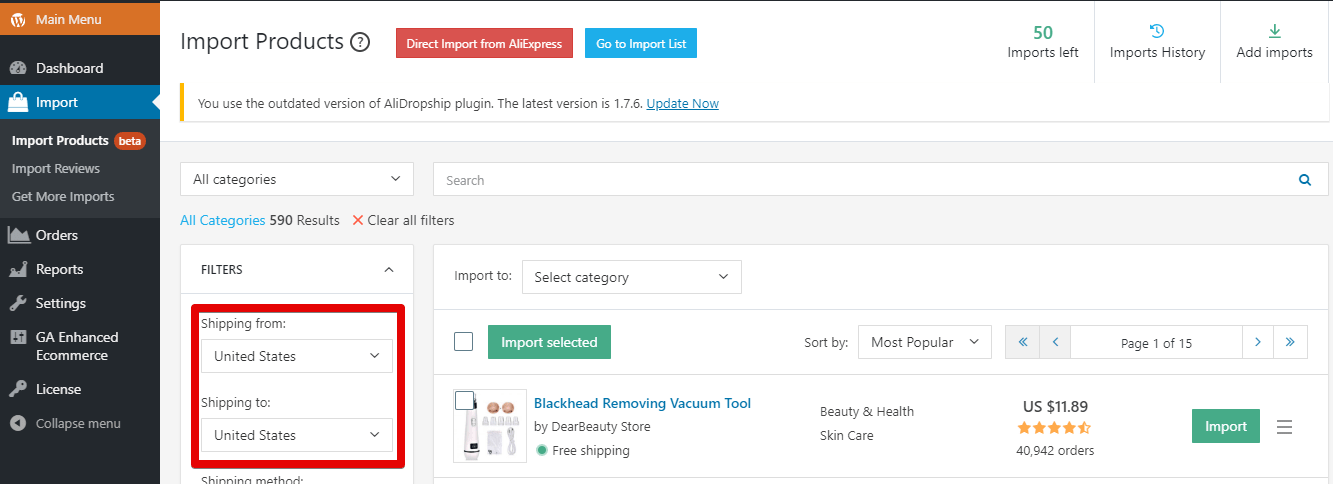 This process can be even more simplified if you use the AliDropship plugin! With this plugin, you’ll be able to import the most popular products that have already been pre-edited to your online store from the AliDropship database. You can also easily sort out suppliers that have warehouses in the United States.