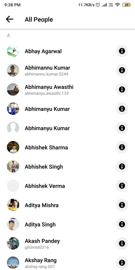 - Here, choose any contact you want to remove and click on the i button right next to the contact.