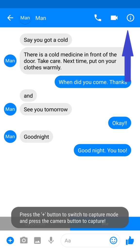 - In Messenger, open the conversation of the person you want to Unfriend.