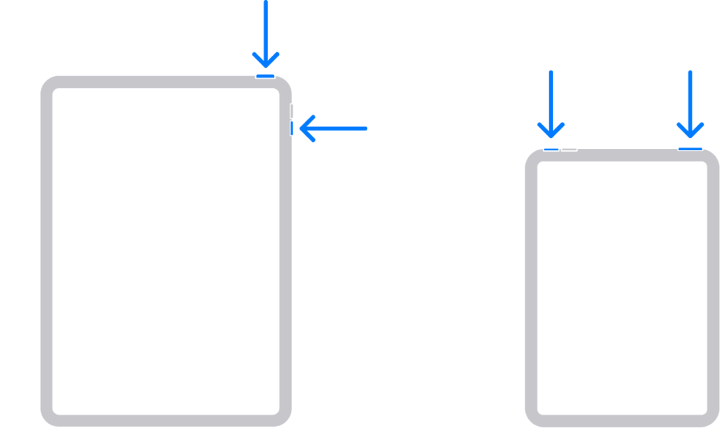 - Then press and hold the top and side button of your iPad.