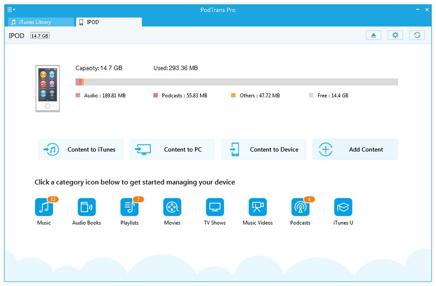 PodTrans performs greatly in the transferring part, more like the iTunes synchronization. It allows the user to transfer songs from PC to an iPhone, iPod, or iPad without the need of iTunes. Like the other iTunes alternative software, PodTrans transfers files and no original file will be erased. Moreover, PodTrans can transfer songs, videos, podcast, voice memos, etc. from an iPhone, iPod, or iPad to PC for backup.