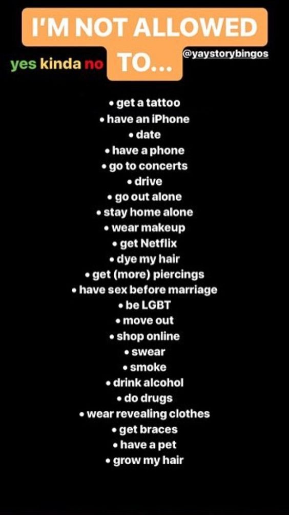 ‘I’m not allowed to’ is a game that lets you share your secrets and sorrows with your beloved friends. You have to post the above picture and mention the things you are not allowed to do by your parents. All your friends who watch the story must tell you what they cannot do.